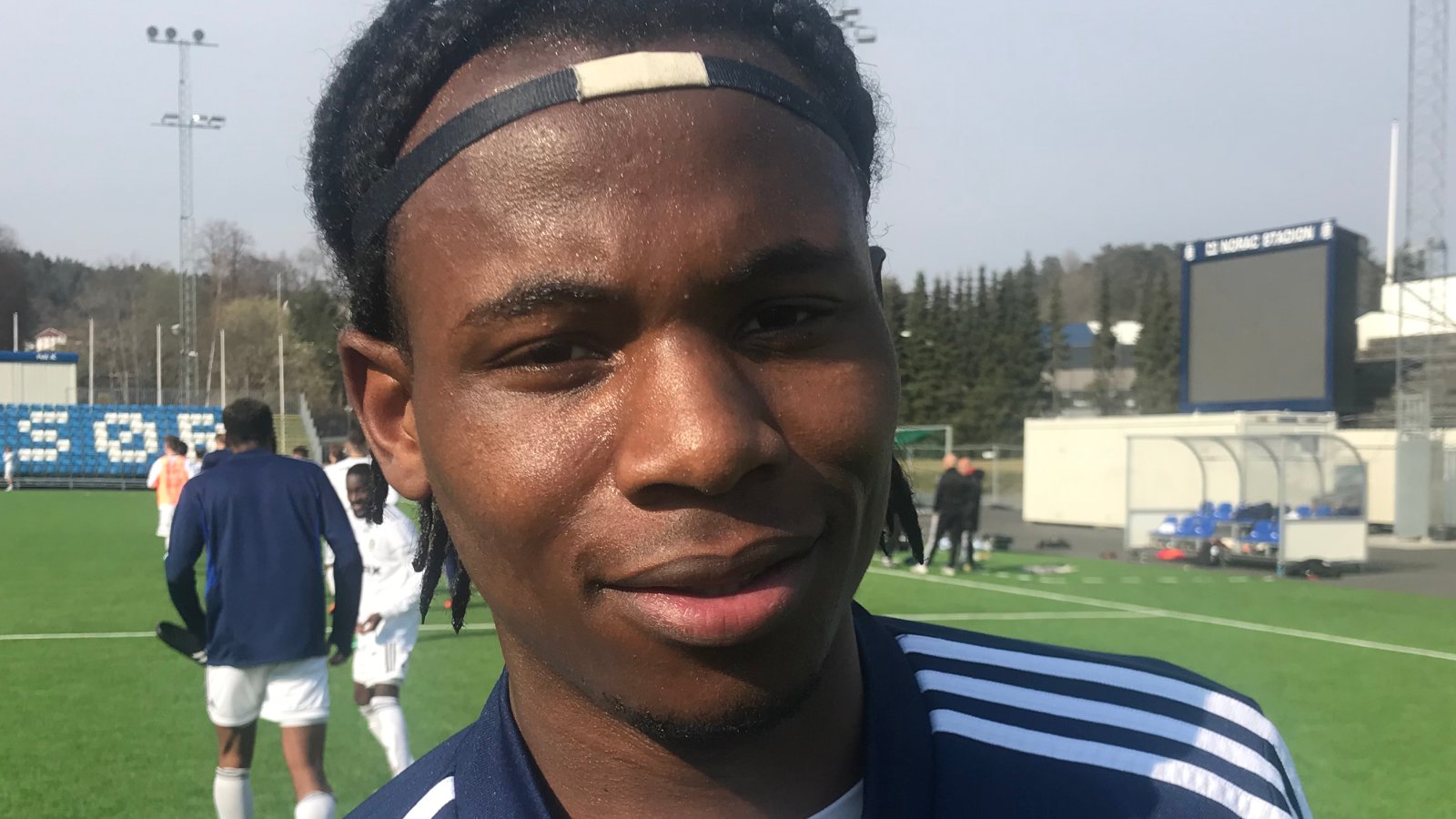 Først mot slutten av kampen lyktes Arendal med å legge et press på hjemmelaget. De siste 10-15 minuttene var Arendal klart førende, men scoringen kom først på overtid da Vital Kaba (bildet) var sterkest i duellspillet og kriget inn reduseringen. Dessverre var det for sent til å berge årets første poeng.