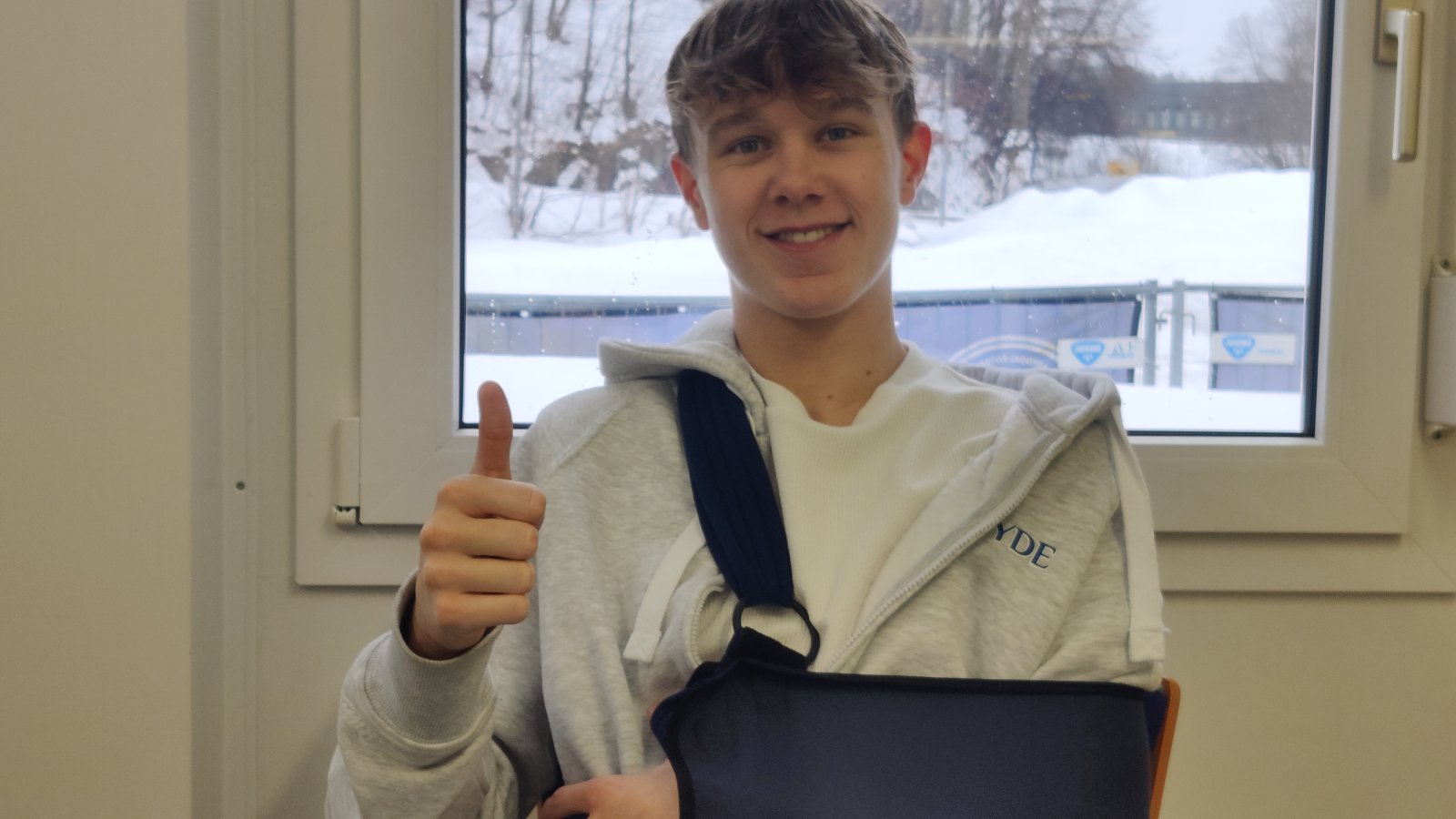 Tirsdagens klassetur på ski fra Sam Eyde vgs til Granestua endte med kragebeinsbrudd for Kristian Solberg Arnesen.