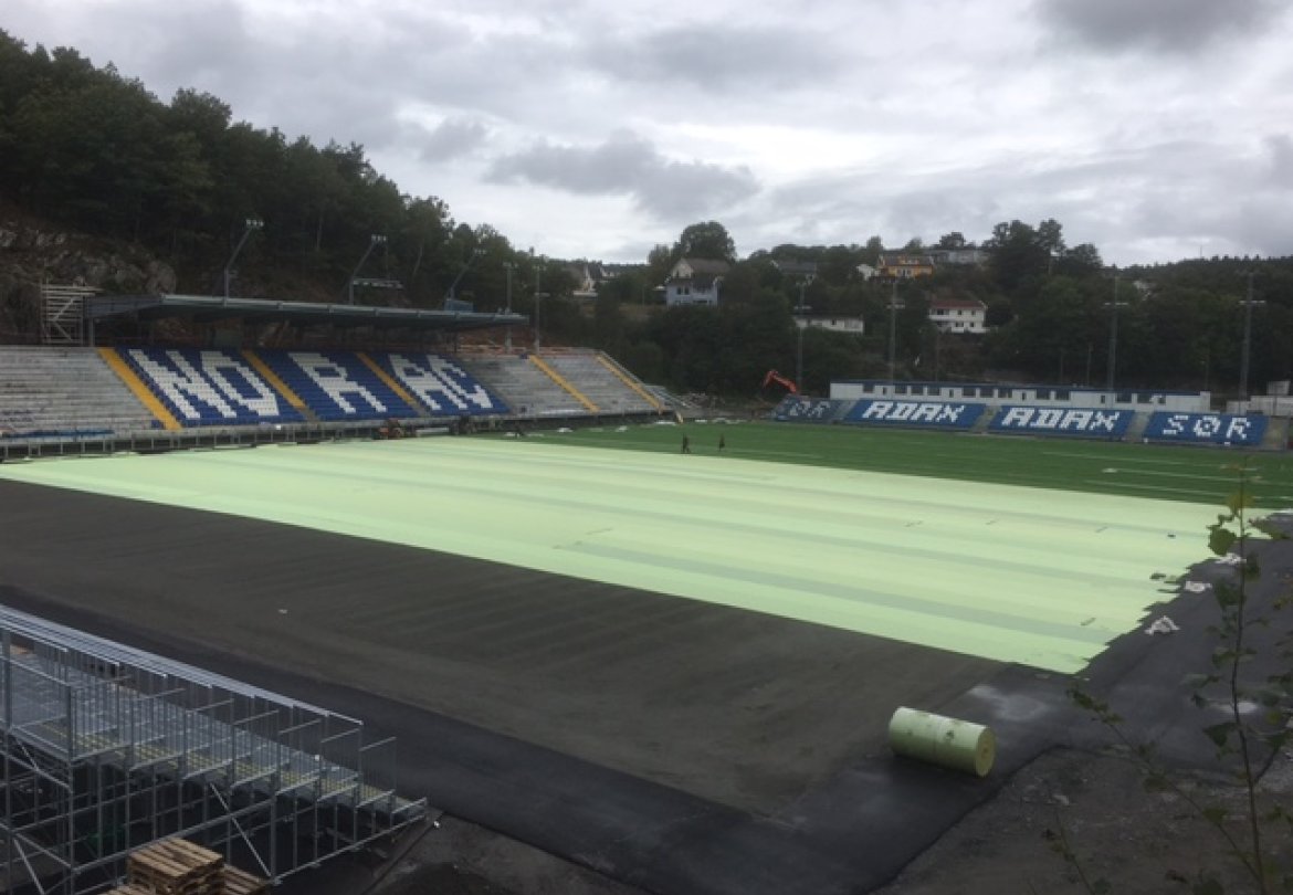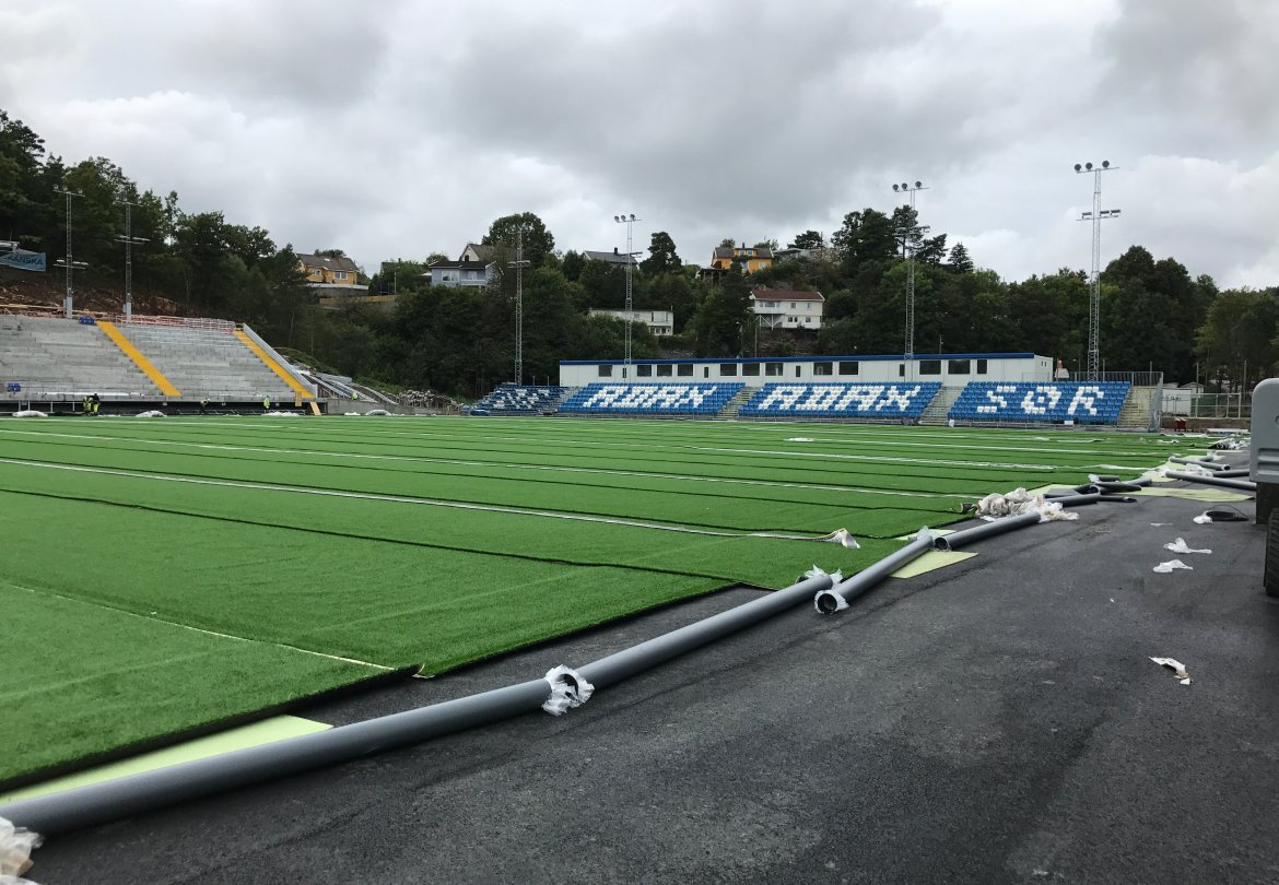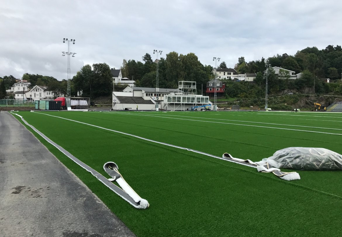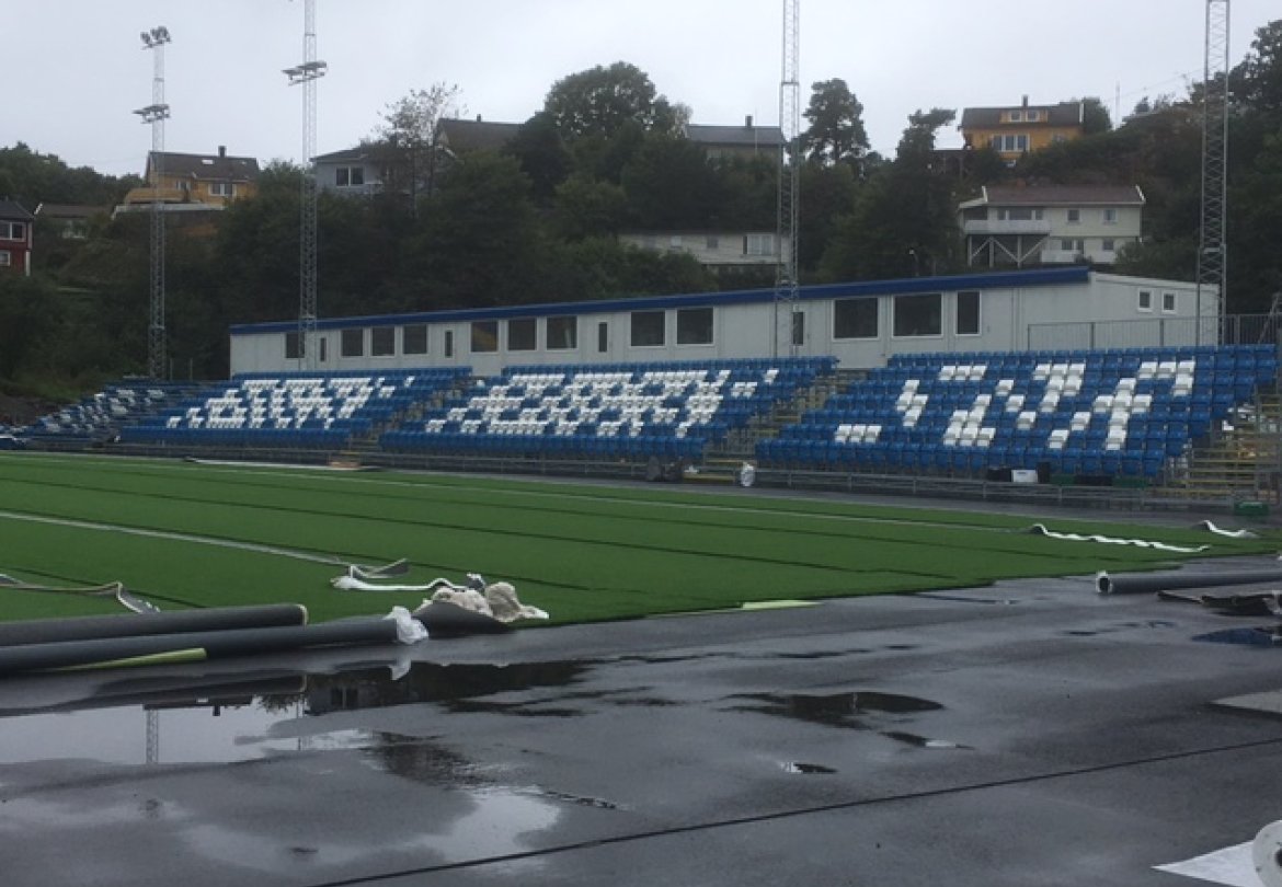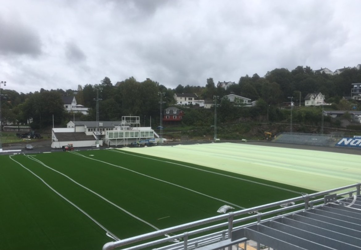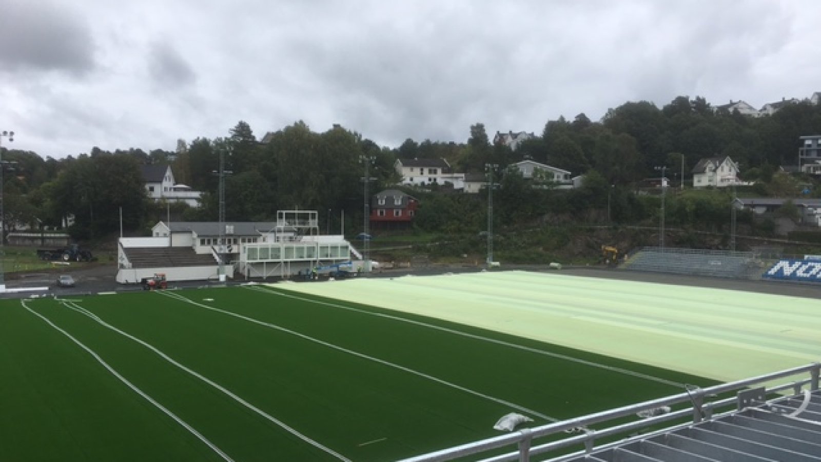 I tillegg til helt ny kunstgressmatte, er det også investert i undervarme, vanningsanlegg, nytt flomlysanlegg, nye tribuner på tre sider av banen og et eget medierigg som gir journalister og kommentatorer de aller beste arbeidsforhold.