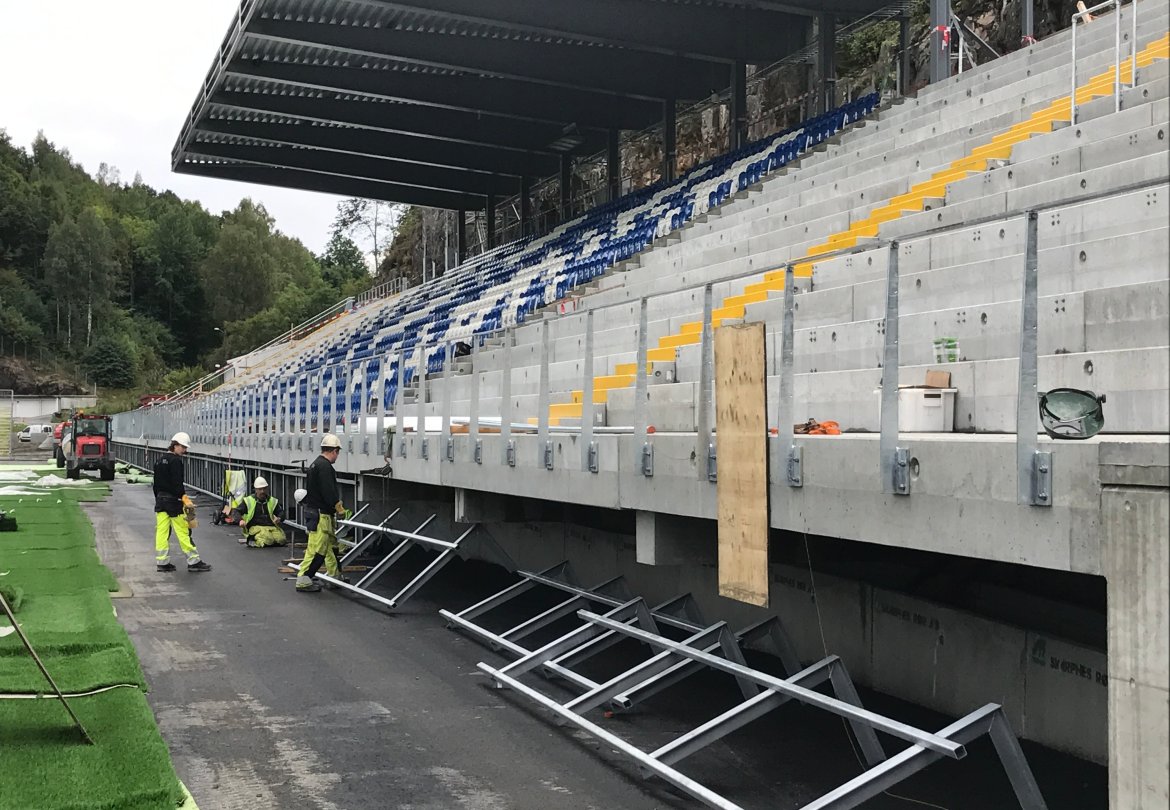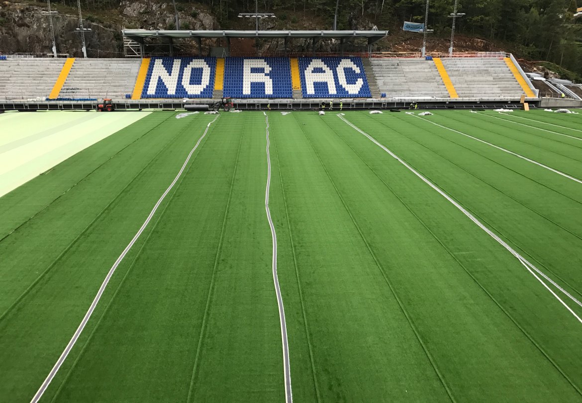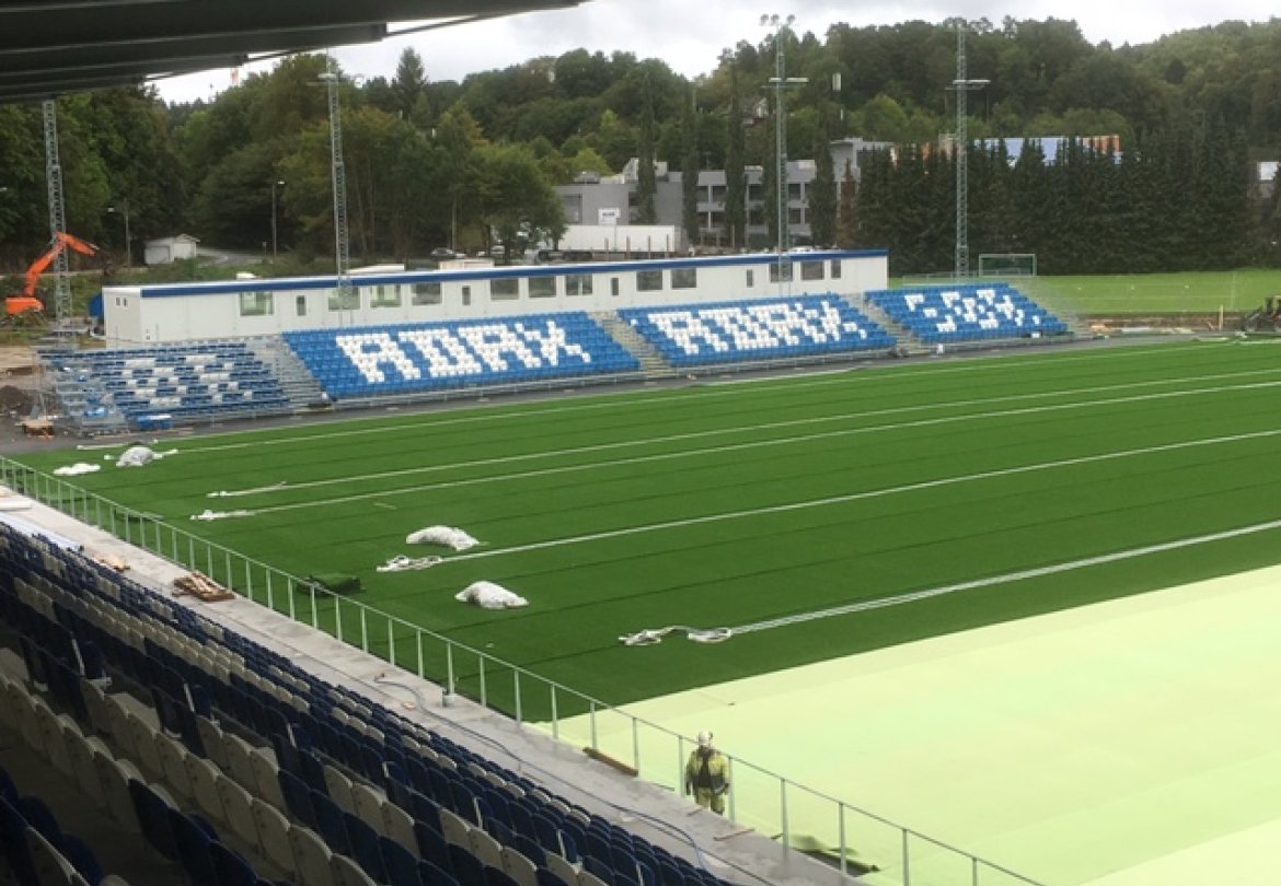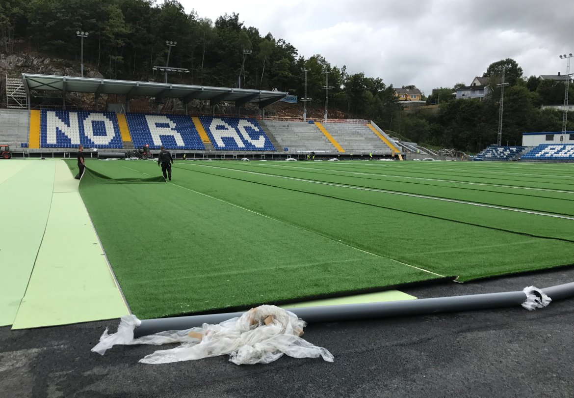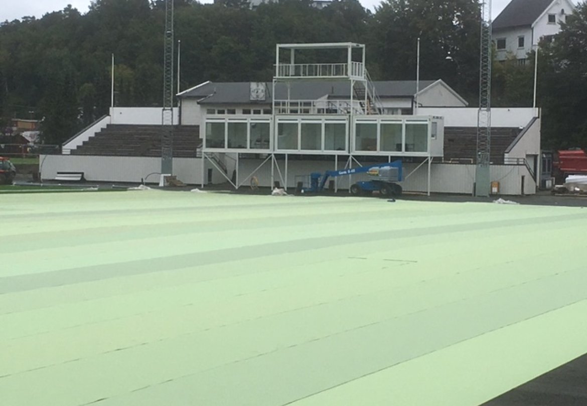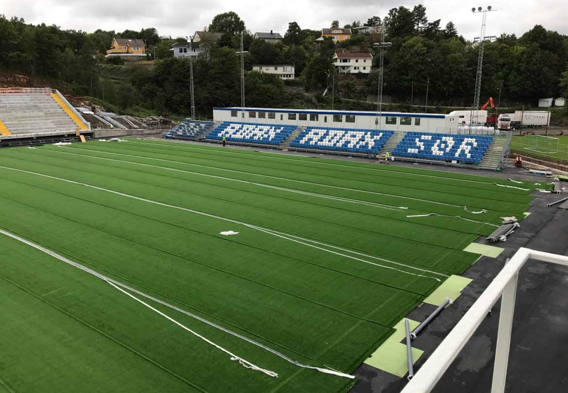 I tillegg til helt ny kunstgressmatte, er det også investert i undervarme, vanningsanlegg, nytt flomlysanlegg, nye tribuner på tre sider av banen og et eget medierigg som gir journalister og kommentatorer de aller beste arbeidsforhold.