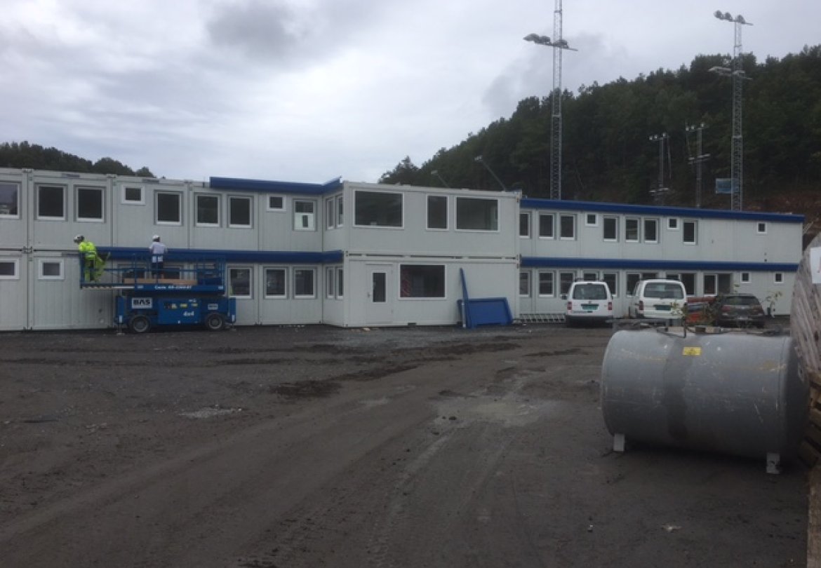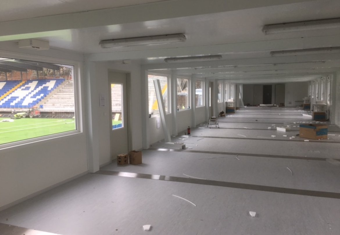 Brakkebygget som er reist i nordenden av banen er på til sammen over 600 kvadratmeter. Her blir det nye kontorlokaler for Arendal Fotball, toaletter for publikum, møtelokaler, vaskerom og VIP-fasiliteter med kjøkken.