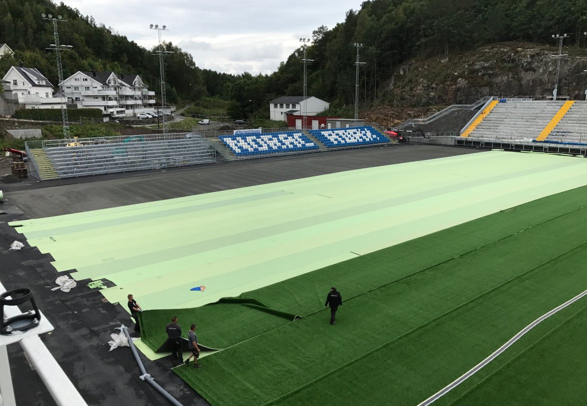 Denne uken begynte arbeidet med å legge kunstgresset på banen - og dermed kan man nå fornemme hva som er i vente når dette byggetrinnet er komplett.