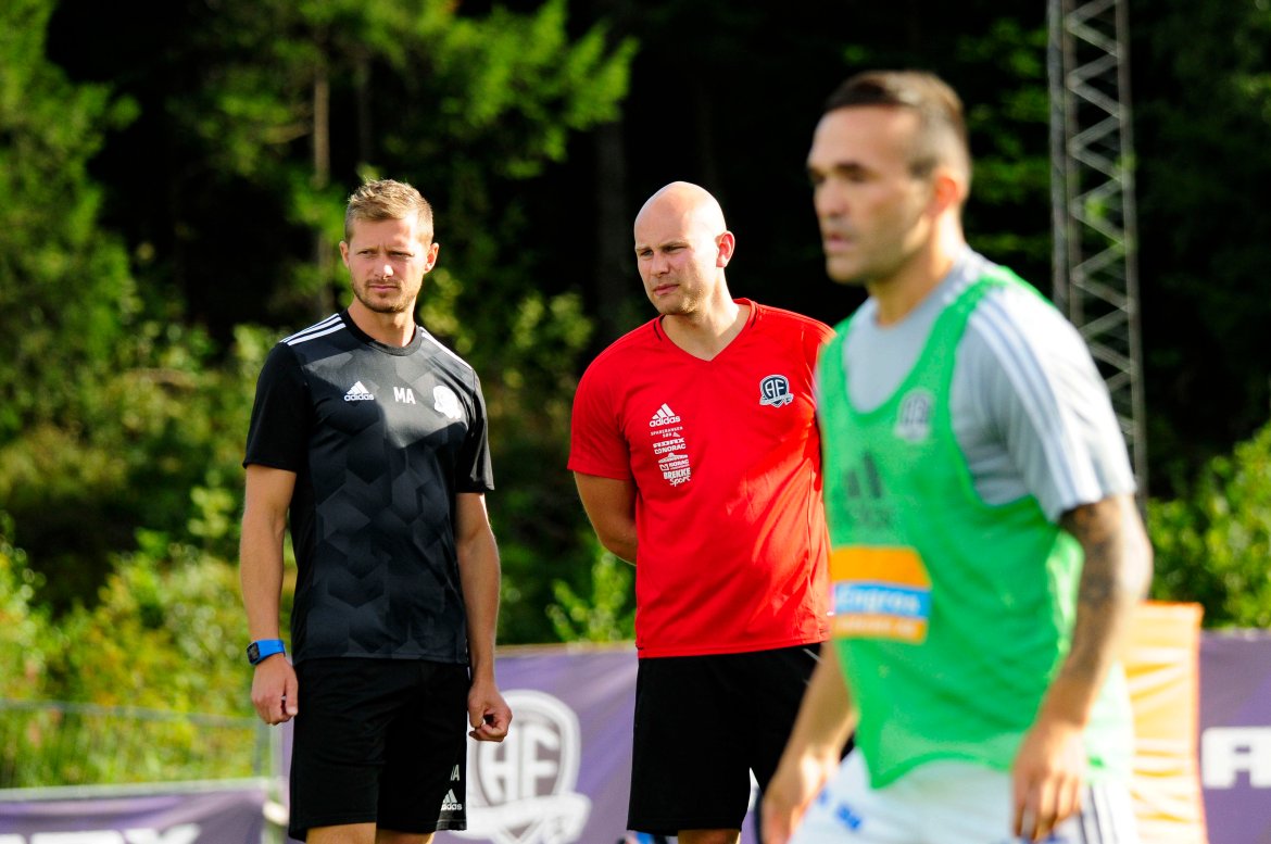 Mattias Andersson, Frank Bredal og resten av støtteapparatet på benken.