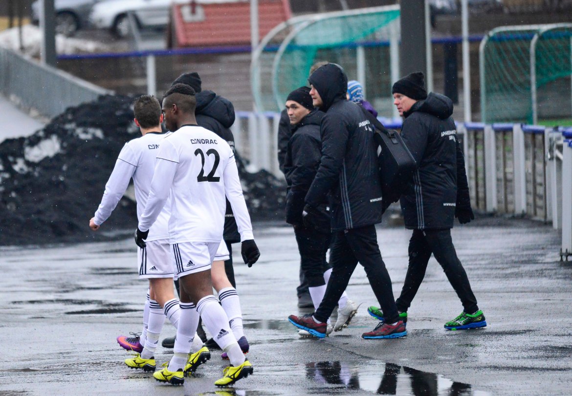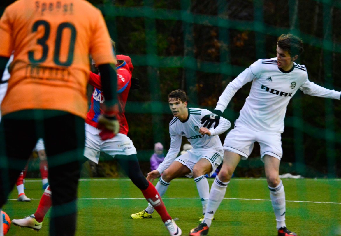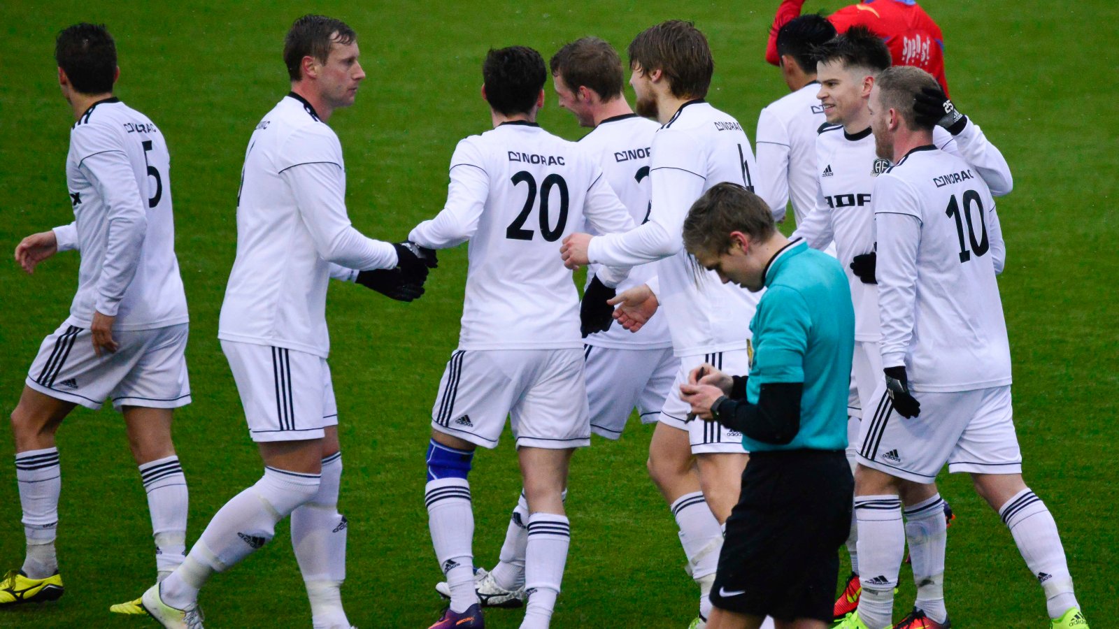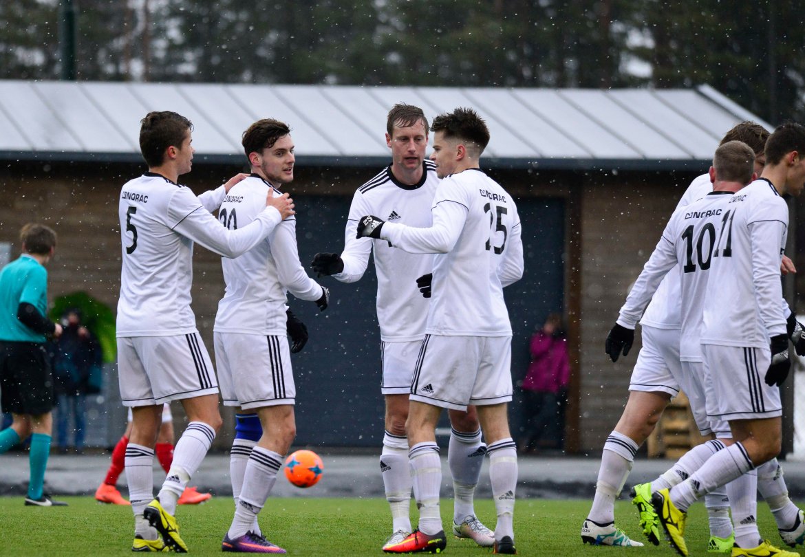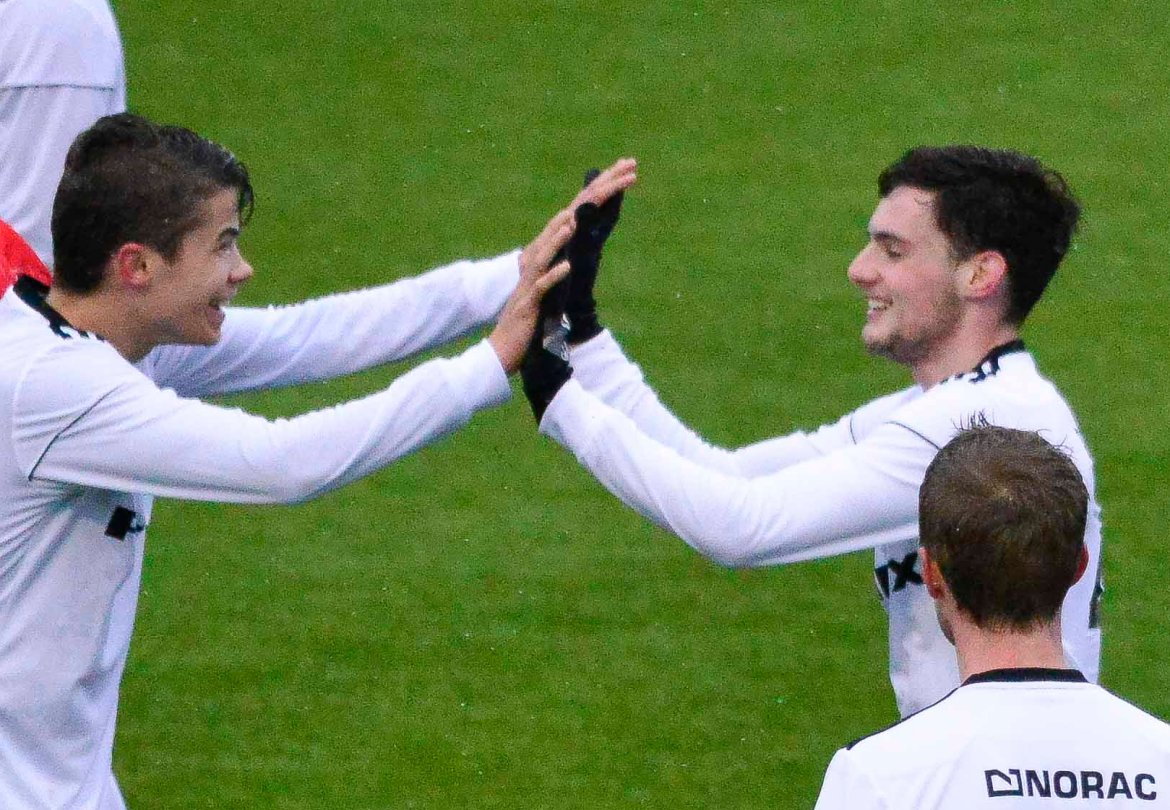 Matias Fjeldal Olsen gratulerer Adi Markovic mens Tobias Henanger og Tasso Dwe kommer til.