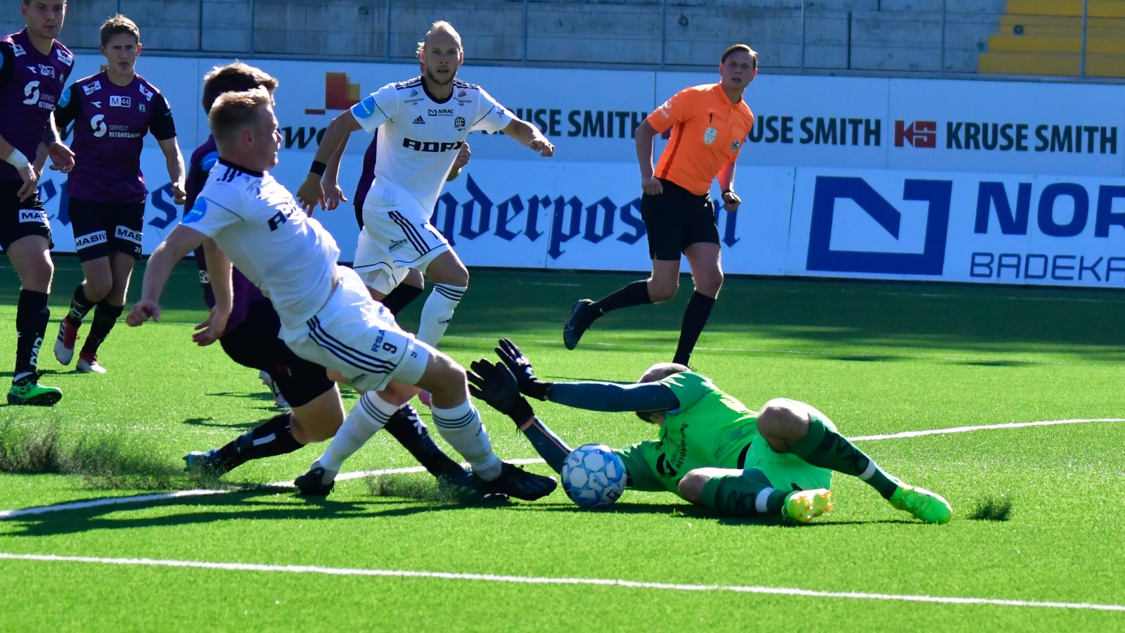 Målsjansene kom på rad og rekke - i begge ender av banen. De 200 på tribunen fikk oppleve en tett og spennende kamp som også inkluderte et annulert mål (hårfin offside - sjekk videoen) og et brent straffespark.