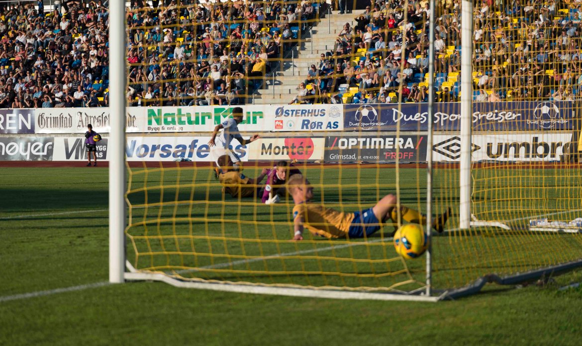 Skaden kom etter bare tre minutters spill da han klinket sammen med Jerv-spissen Idelino Gomes Colubali og sin egen lagkamerat Dejan Corovic inne i 16-meteren. Agderpostens bilder fra situasjonen viser hvordan leggen brekker idet Anders bein treffer leggskinnen til Jerv-spilleren.