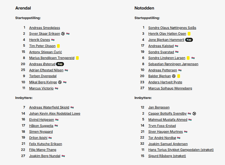 Det tok ikke mer enn fem minutter før den første scoringen satt. Mikal Kvinge får til slutt ballen etter at flere andre har hatt avslutningsmuligheter. Mikal sitt harde skudd fra spiss vinkel ender i keeperens lengste hjørne. Sju minutter senere kombinerer Marcus Victorio og Syver Skaar Eriksen inne i Notoddens felt, og Syver vender og setter et kjapt skudd utagbart helt ut ved stolpen. Det er Syver sitt første mål i Arendal-drakten etter overgangen fra Mjøndalen tidligere i år.