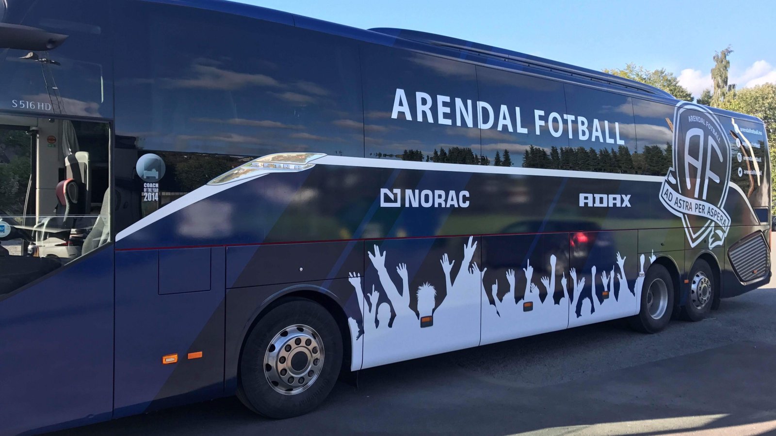 - Vi er veldig godt fornøyd med denne avtalen, og vi synes bussen er blitt veldig flott. Det er en nesten helt ny Setra-buss som nå er omprofilert og spesialtilpasset våre behov. Og siden bussen skal brukes også av andre oppdragsgivere, så blir den ofte å se på veien. Det gir oss en fin profilering som en ekstragevinst, sier daglig leder i Arendal Fotball, Bård Sterk-Hansen.