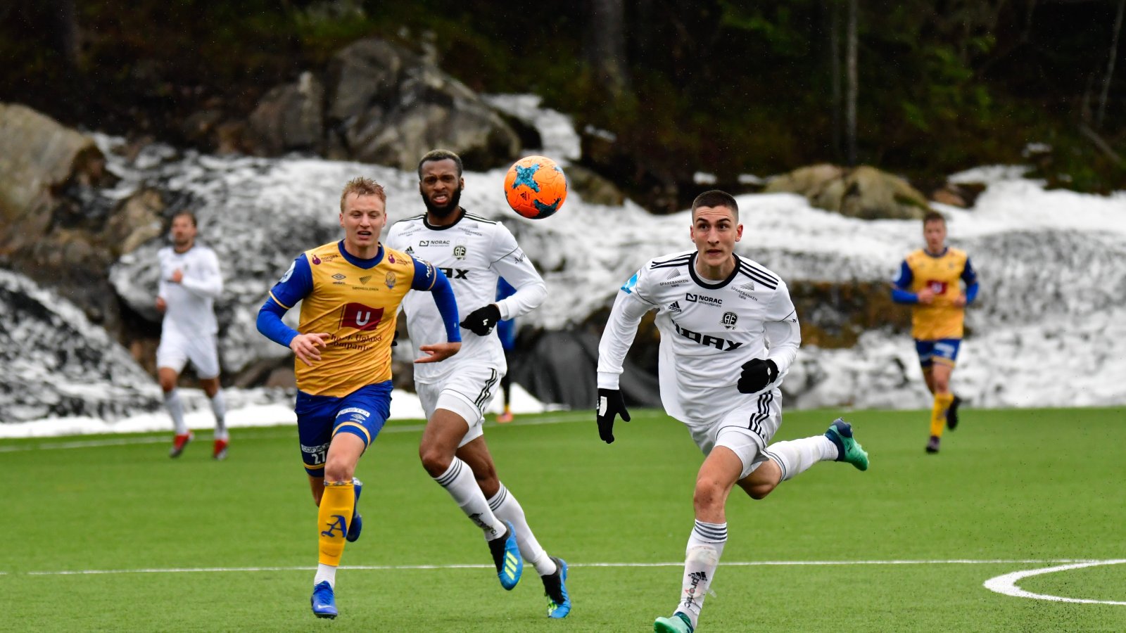 Reiss Greenidge i duell med Jerv Thomas Zernichow.