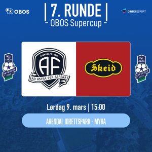 Dette er siste runde i OBOS Supercup. Vi møter laget som topper vinterens tabell på Arendal Idrettspark - Myra.