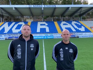 Roger Risholt og Bjørge Fedje ser fremover og de er optimister med blikket festet mot 2021. Her er deres julehilsen til alle fotballvenner i Arendal!